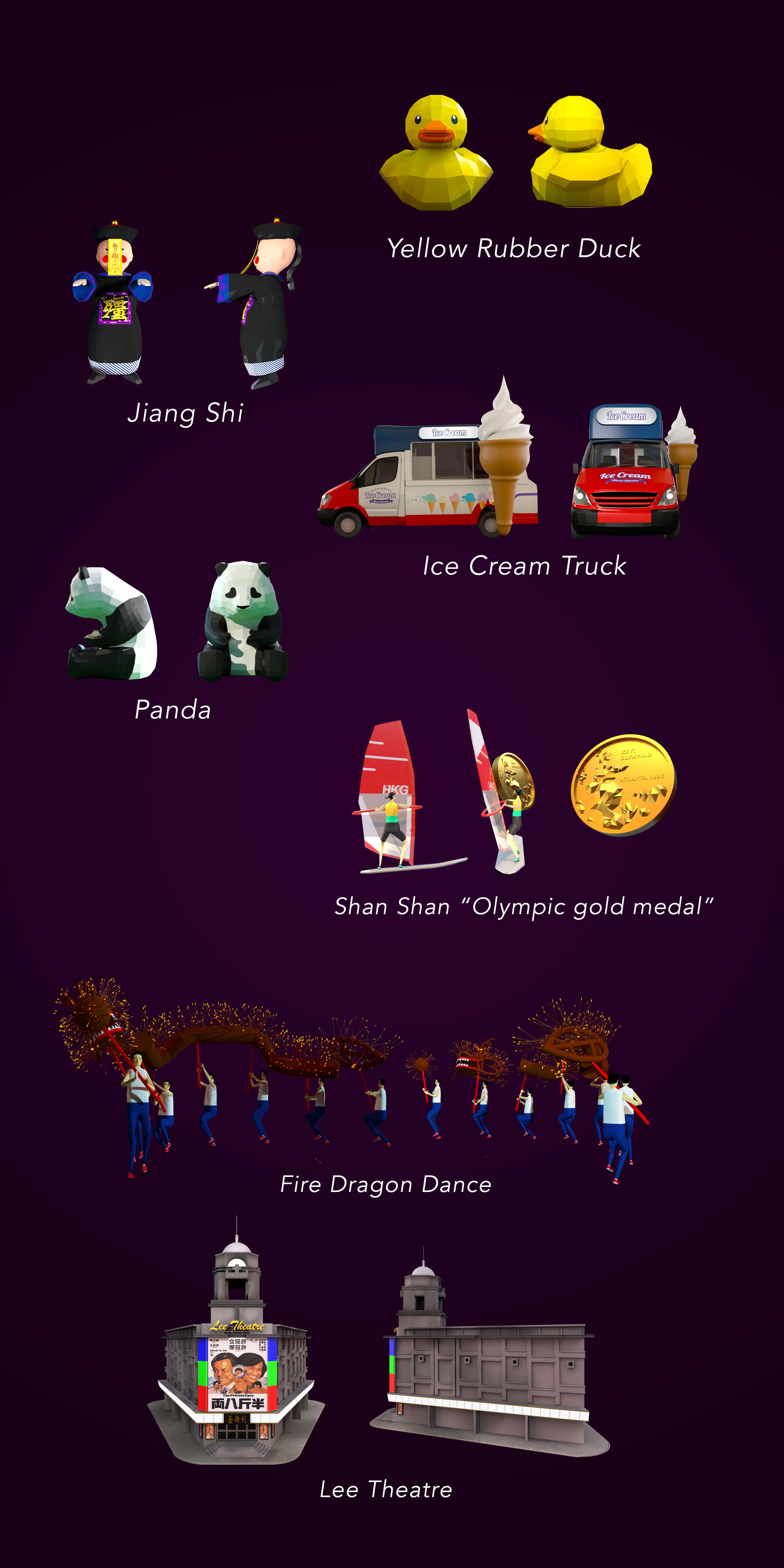 In this project, we have created VR & AR interactive media experience. By activating the function of augmented reality (AR) on the mobile phones, the participants can interact with the animations and bring some important moments in HK history to scenes to life via AR, such as Lee Lai-shan won the first gold medal for HK in the Olympic Games, Rubber Duck visited HK’s Victoria Harbour, and many more. We have involved throughout the process of production, from generating ideas for all elements of VR & AR experiences, designing production pipeline, creating all VR & AR CG elements and animations, arranging 360-degree aerial shoot at Victoria Harbour, to 360 video composition, and so on.